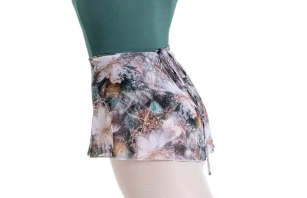 This elegant printed wrap skirt features a beautiful pattern with adjustable fit for dancers. The lightweight fabric flows gracefully during class and rehearsals, while the classic wrap design allows for a customizable fit. Perfect for dancers who want artistic, studio-ready style that transitions seamlessly from barre to center floor in ballet and contemporary classes.