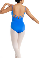 This striking strappy back leotard features an eye-catching back design with comfortable stretch for dancers. The elegant straps create beautiful lines while allowing full freedom of movement during class and rehearsals. Crafted with flexible fabric that stays securely in place through turns and leaps, this leotard is perfect for dancers who want expressive, studio-ready style.