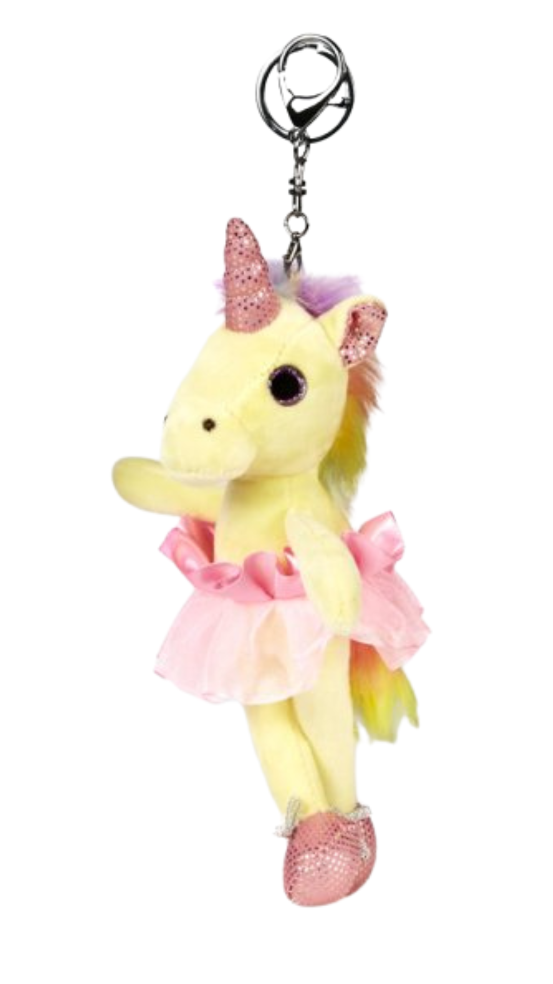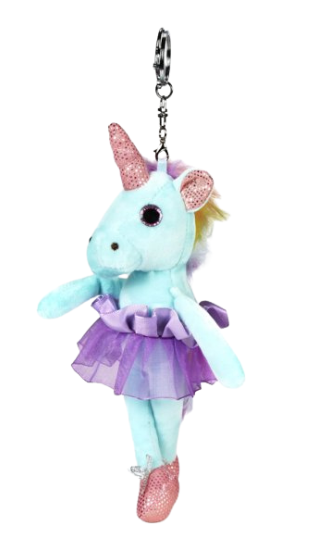Add a little magic to your everyday with our Unicorn Keychain 6104! This cuddly bag tag features a rainbow mane and tail, along with a pink and silver horn and ballet shoes. Easily attach it to any bag or purse with the key ring and lobster clasp. (Unicorn not guaranteed to grant wishes!)