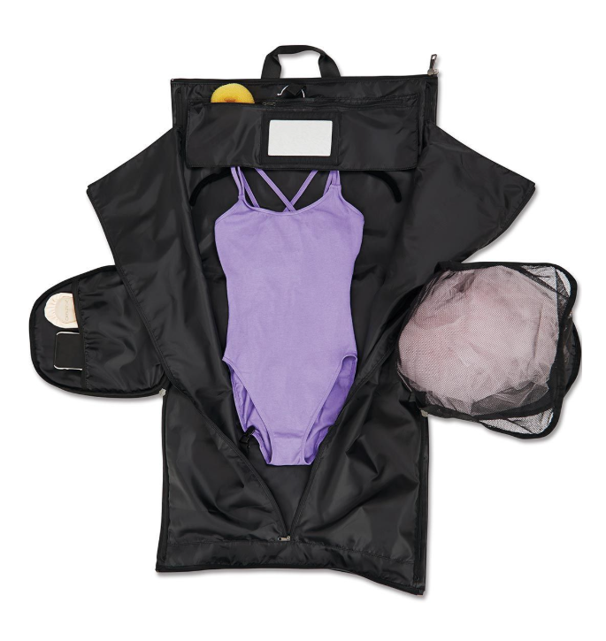 This foldable garment duffel is designed to keep your costumes and dancewear organized and wrinkle-free on the go. Lightweight and easy to carry, it's perfect for transporting your performance attire to competitions, recitals, or rehearsals. A practical solution for dancers who need to keep their garments in pristine condition.