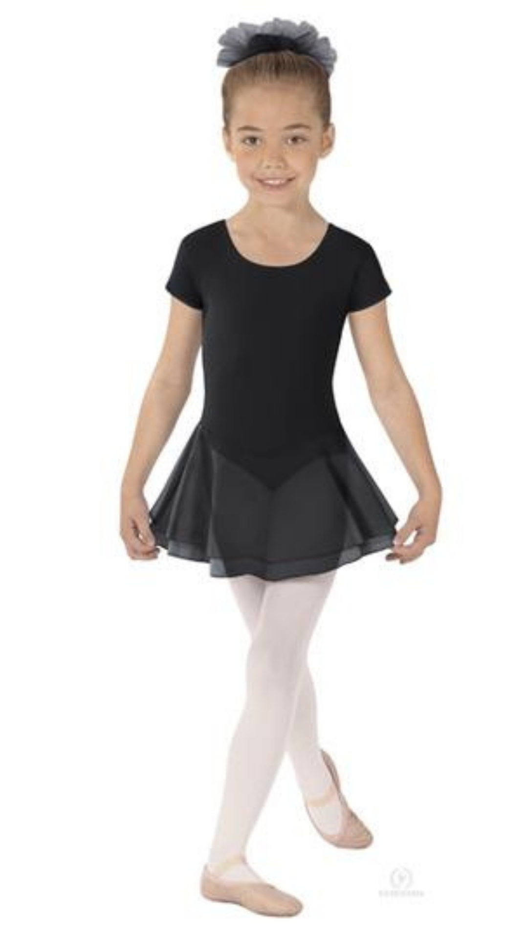 Choose the Cap Sleeve Skirted Leotard (10467C) for your beginner's dancewear! This basic style leotard with a dainty skirt will flatter any figure while providing expertise-approved support and comfort. Perfect for young dancers, its form-fitting, quality construction will last through years of practice.