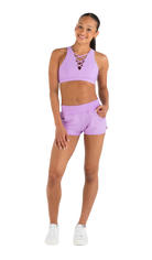 Introducing the Aerobic Short in Lavender: the ultimate comfort and versatility for all-day wear. Made from our soft and durable flex-it rib, this short moves with you in any activity. With an ultra-comfy waistband and curved side seams for ease of movement, put this short to the test and experience pure comfort.